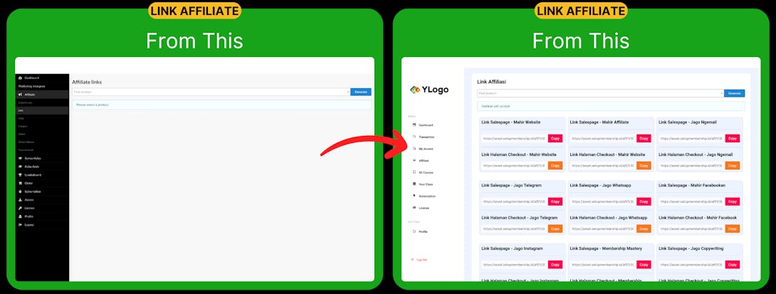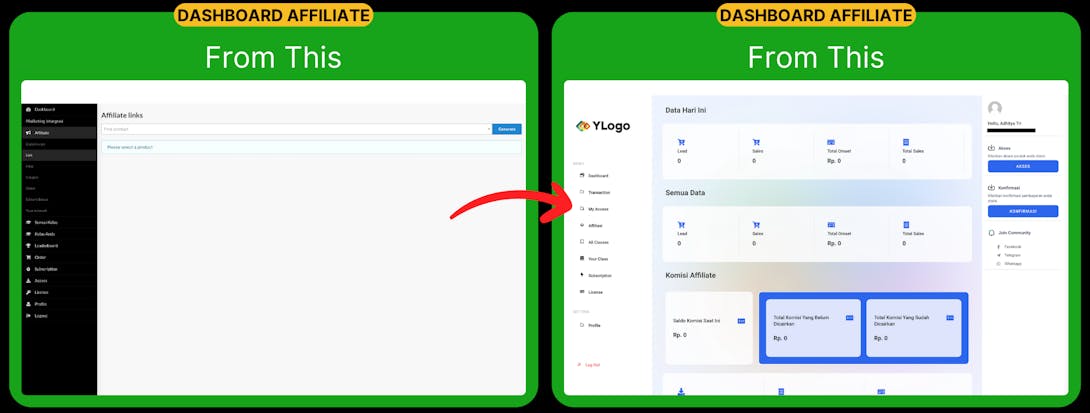 Di dalam sistem membership tersebut juga sudah termasuk sistem affiliasinya. Jadi, jika ingin punya sistem affiliasi, ya tinggal pakai